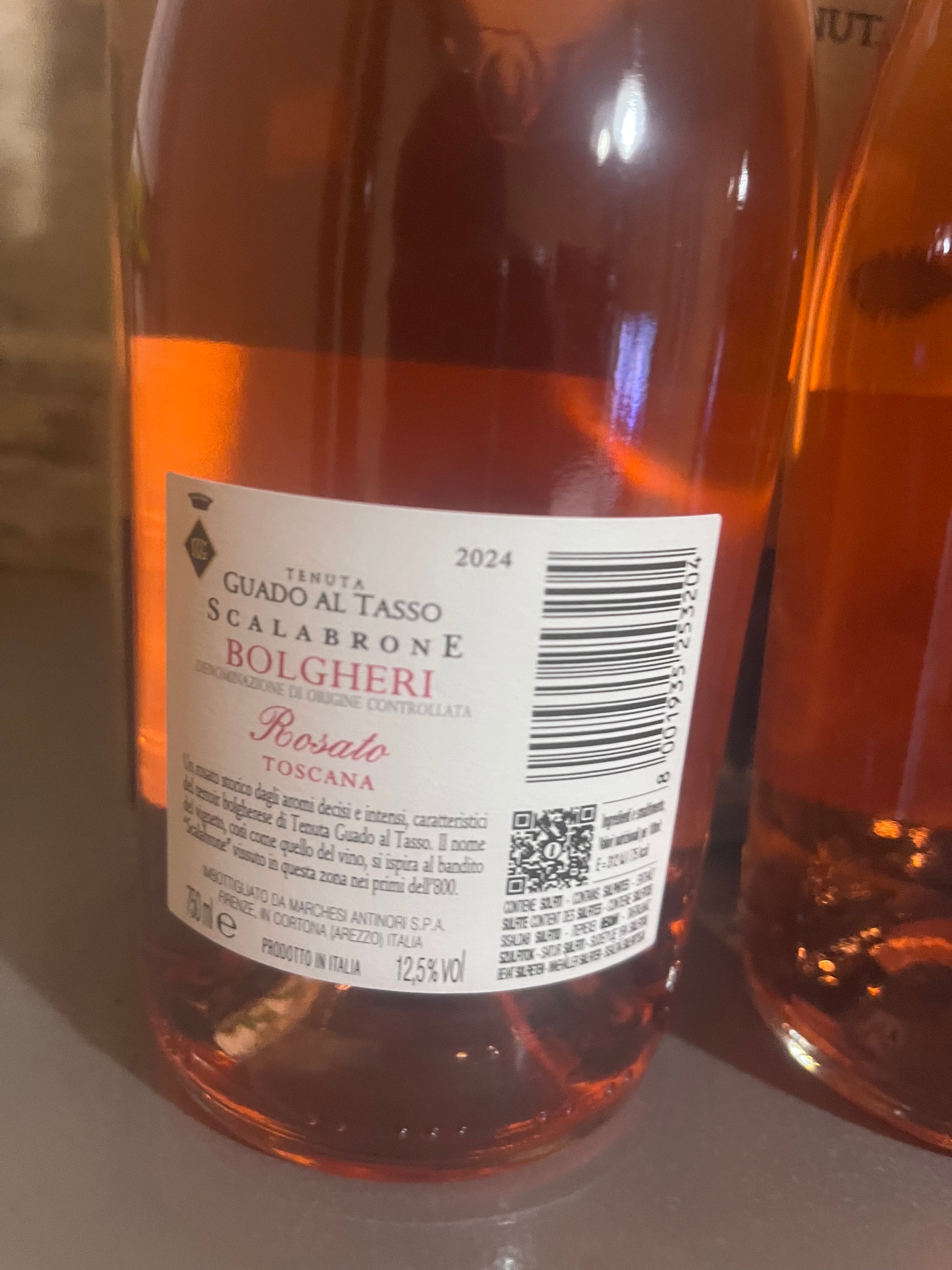 Lo Scalabrone 2024 è un Bolgheri DOC Rosato prodotto dalla Tenuta Guado al Tasso di Marchesi Antinori, con un colore rosa peonia tenue e profumi intensi di ciliegia, melograno e arancia rossa, accompagnati da note floreali di rosa. Al palato risulta fruttato, sapido, fresco e persistente, ideale come aperitivo o per accompagnare piatti di pesce e carni bianche
