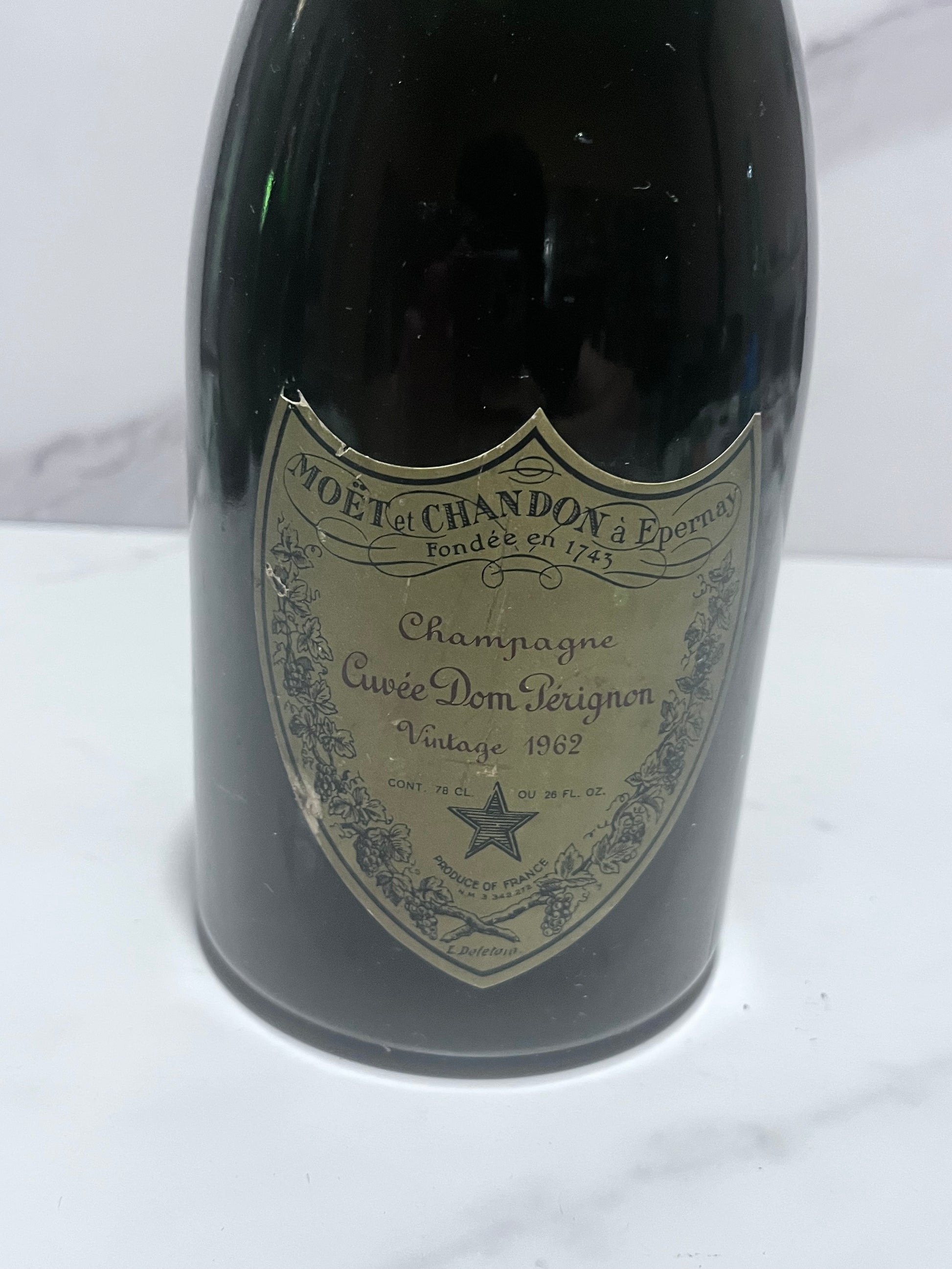 Il valore di mercato di una bottiglia di Dom Pérignon 1962 può variare moltissimo in base a condizioni di conservazione, livello del vino nella bottiglia, etichetta e storicità: